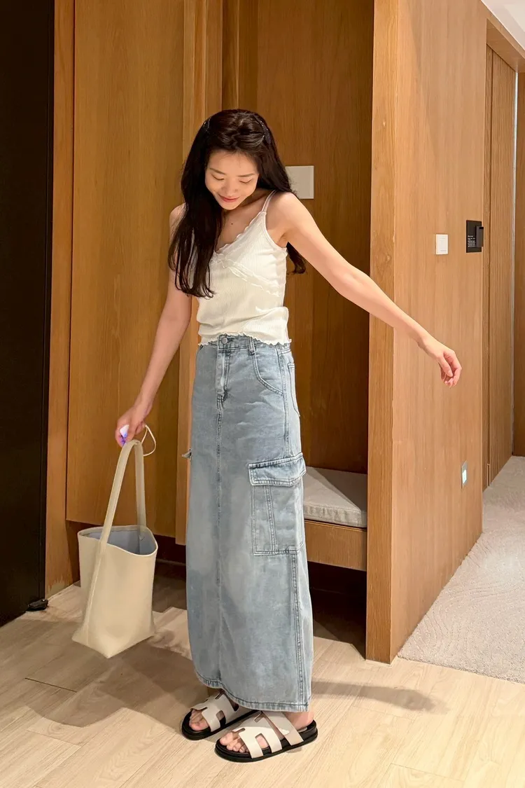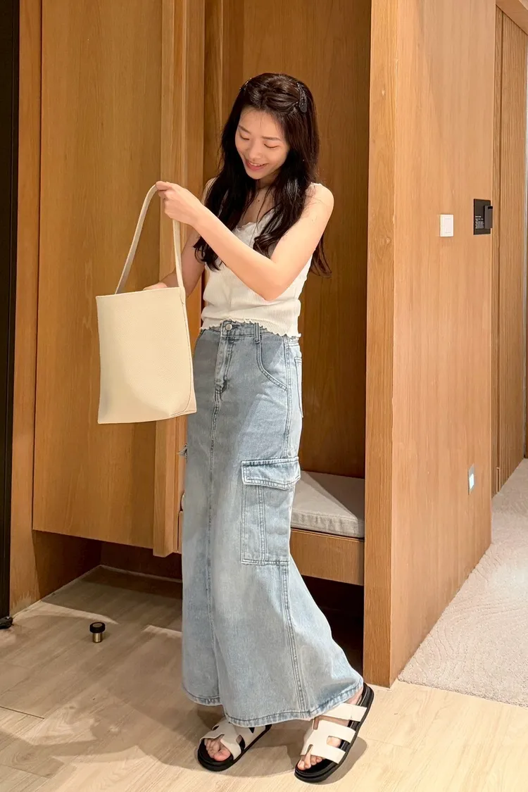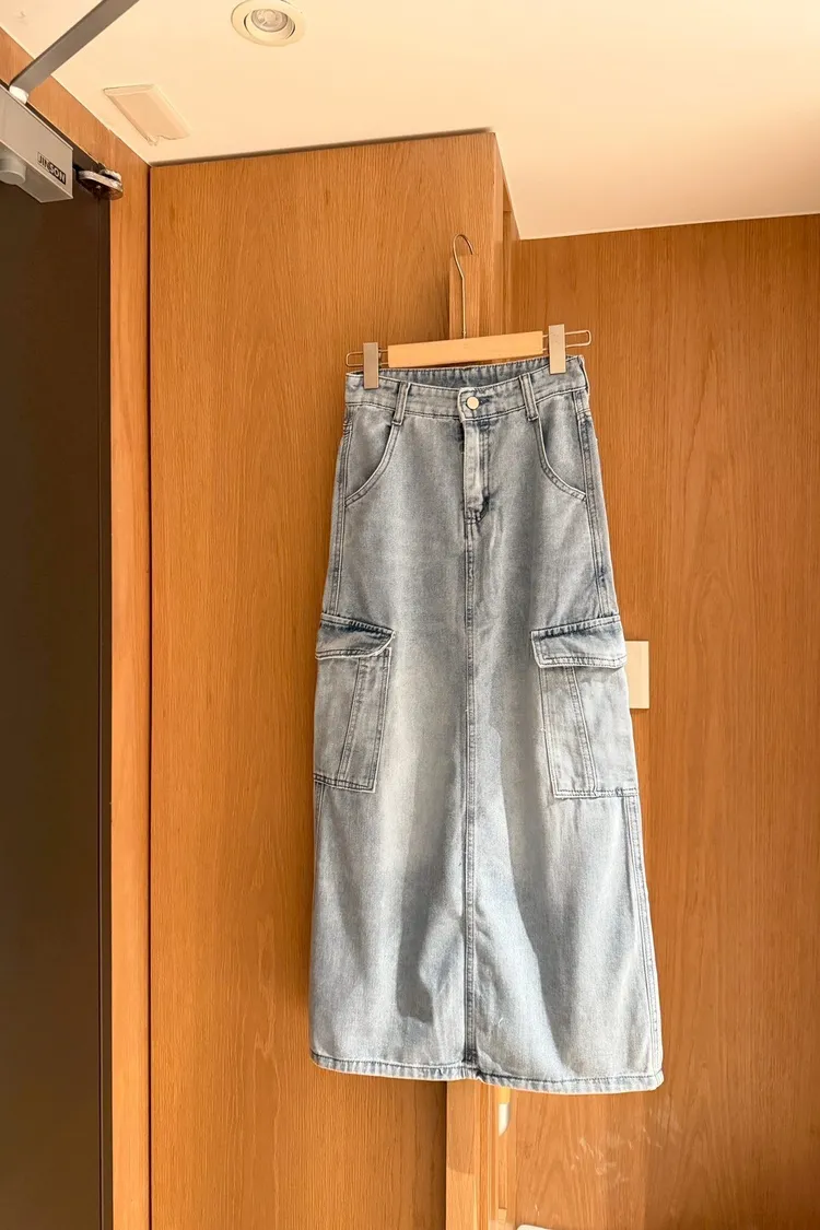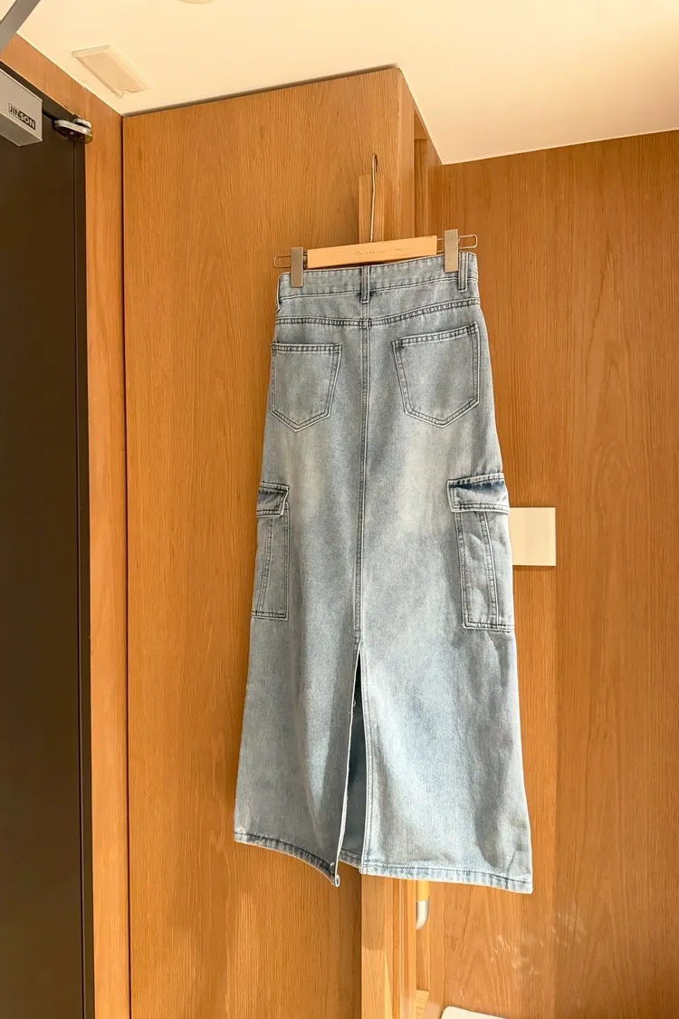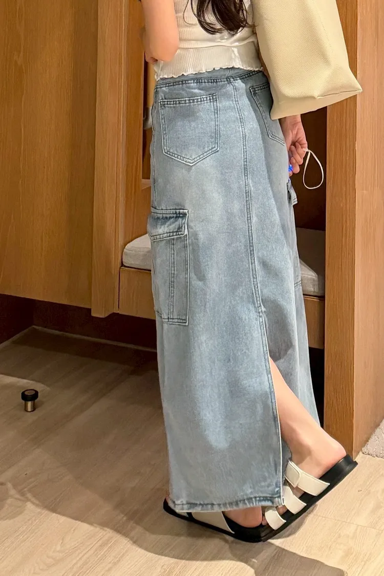 工裝後開岔牛仔長裙