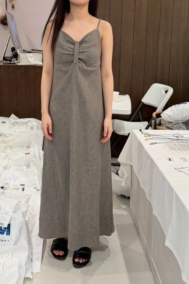 『FIZZI』這件一定要帶//抓皺冷咖長洋裝