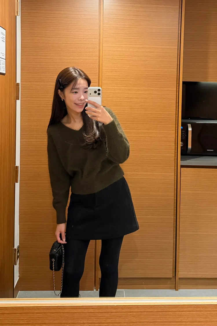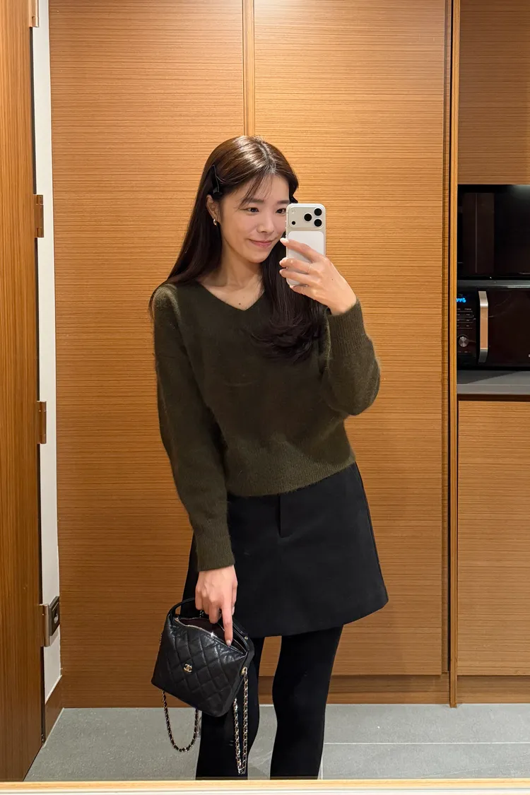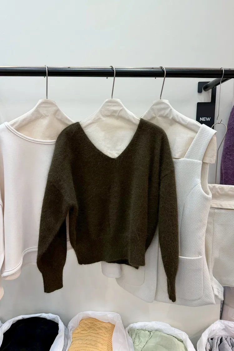 『FIZZI』沉穩山脈綠//V領安格拉毛衣