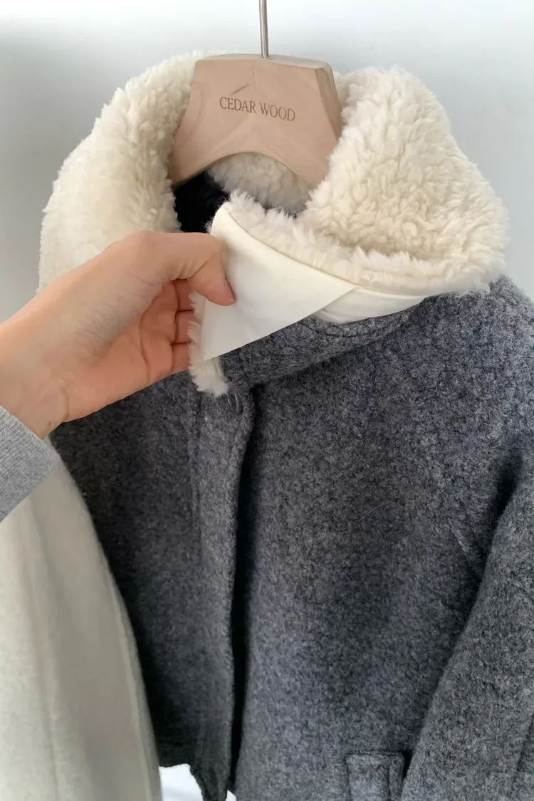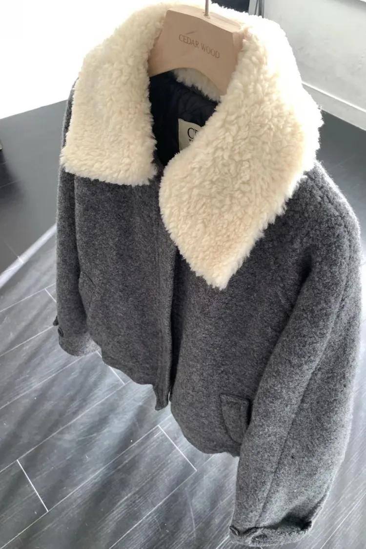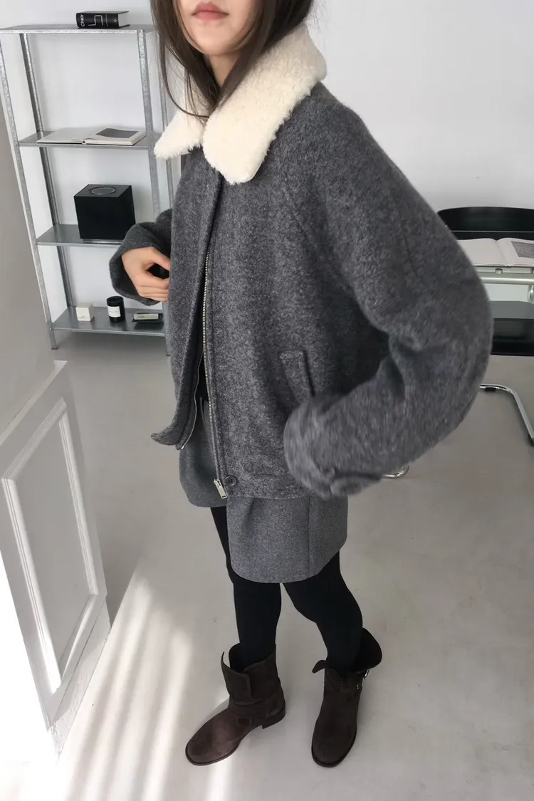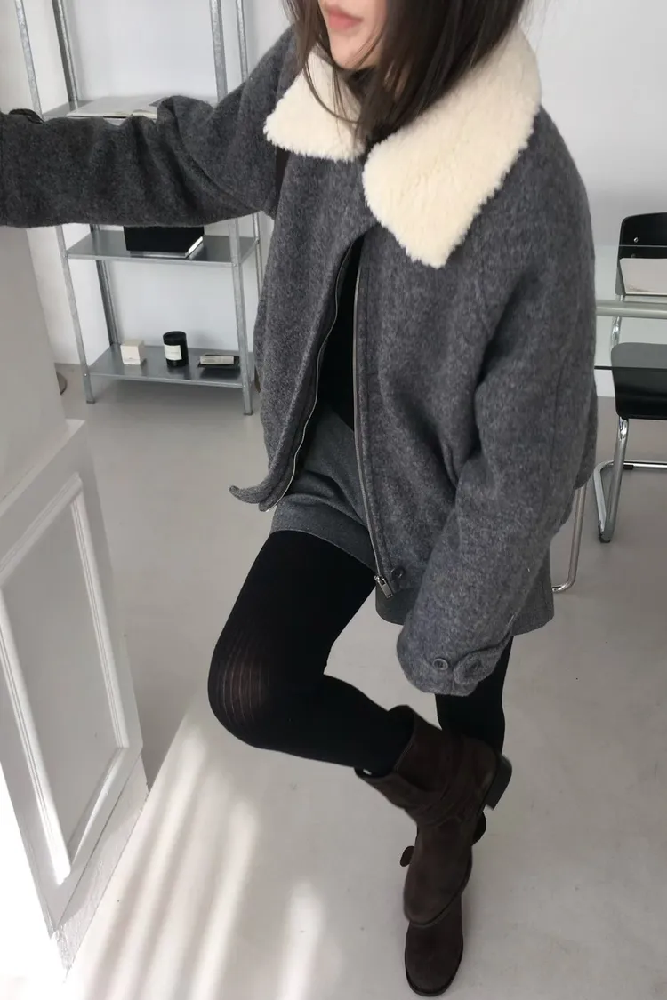 『FIZZI』質感格雷灰//捲捲毛翻領夾克
