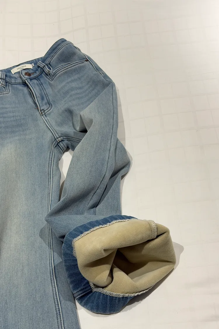 『FIZZI』漸層版型100//內刷絨牛仔喇叭褲