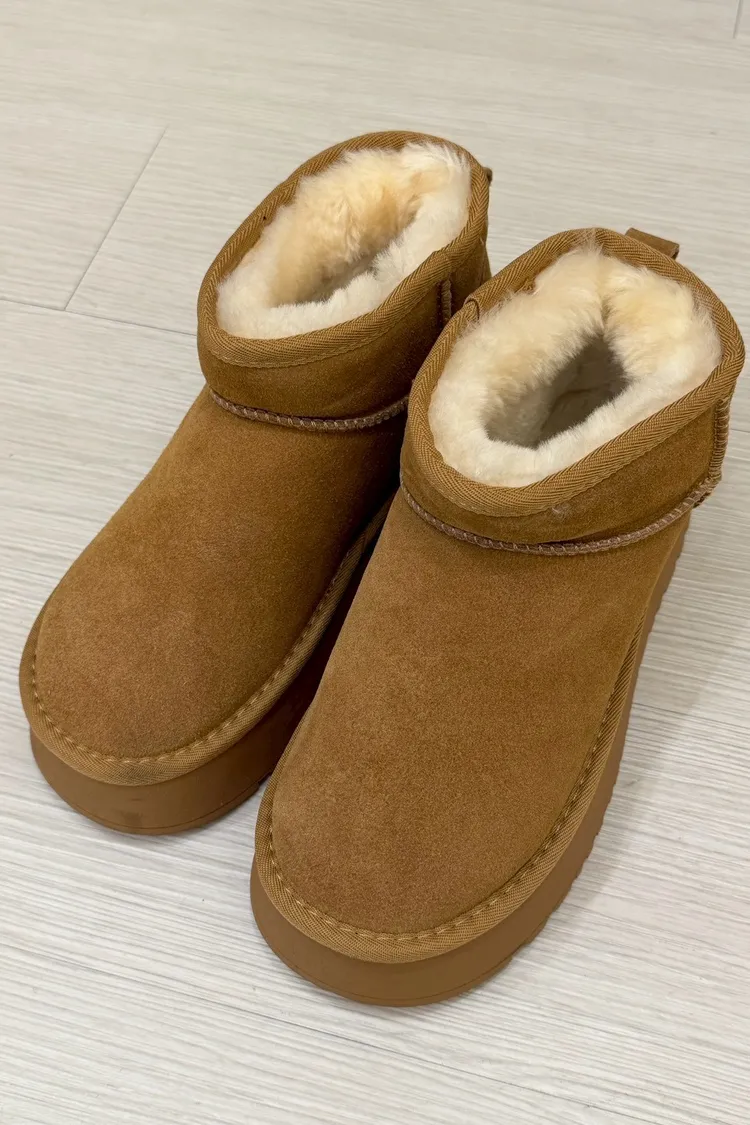 (二手)顯腿長//牛皮x羊毛絨保暖雪地靴
