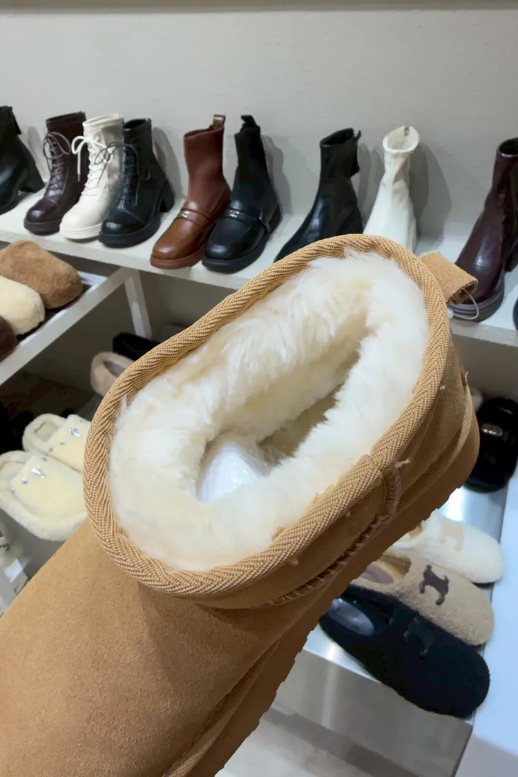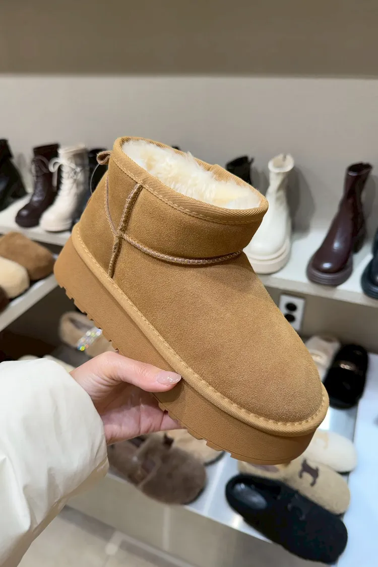 顯腿長//牛皮x羊毛絨保暖雪地靴