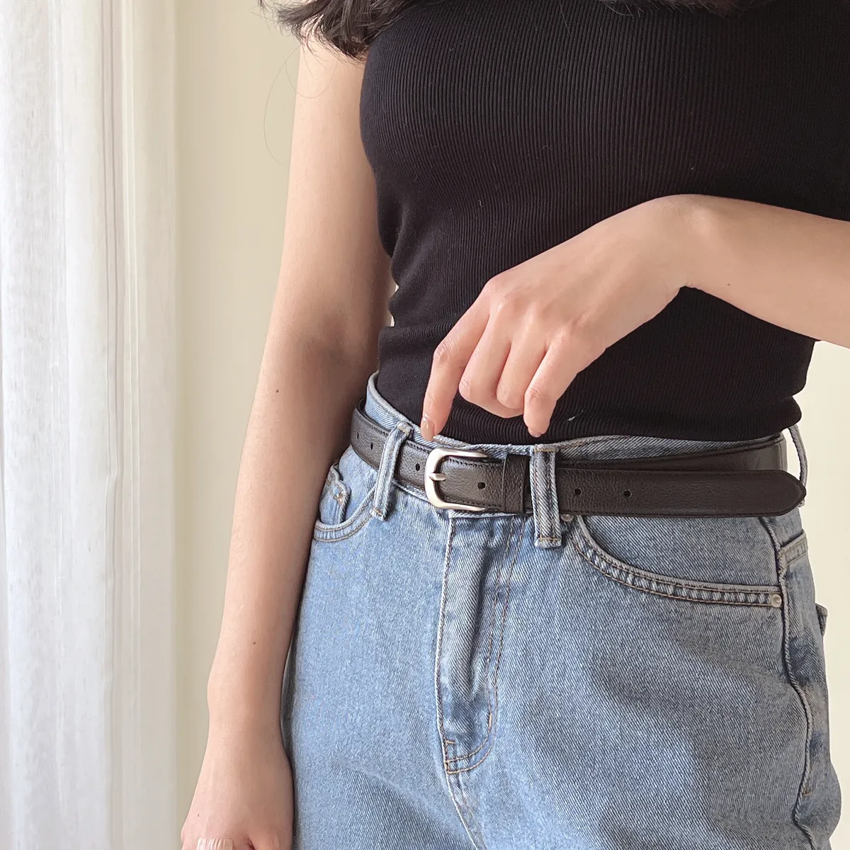 (二手)[ Made in Korea ]質感銀扣皮質皮帶
