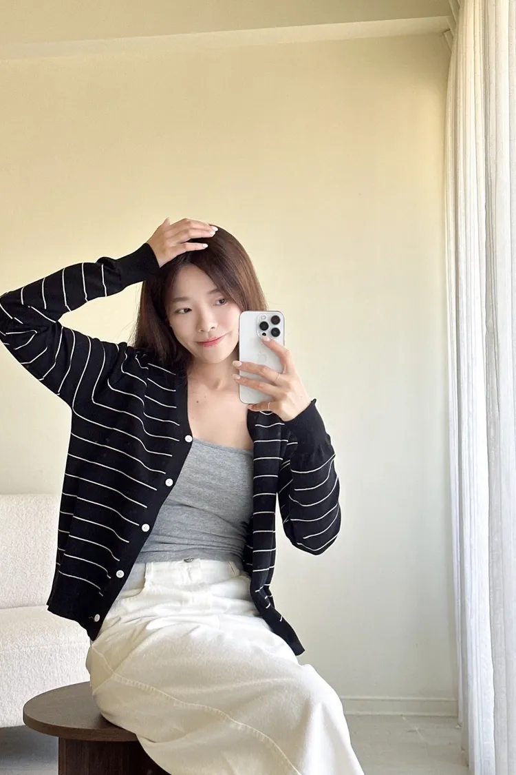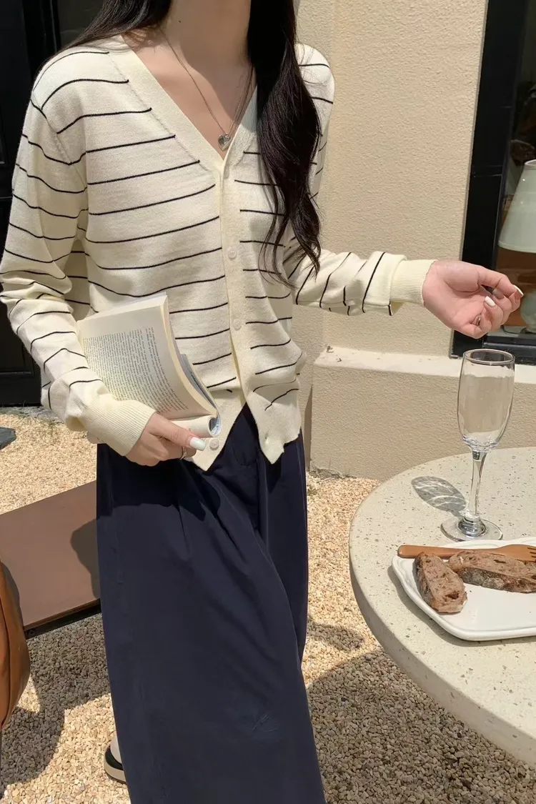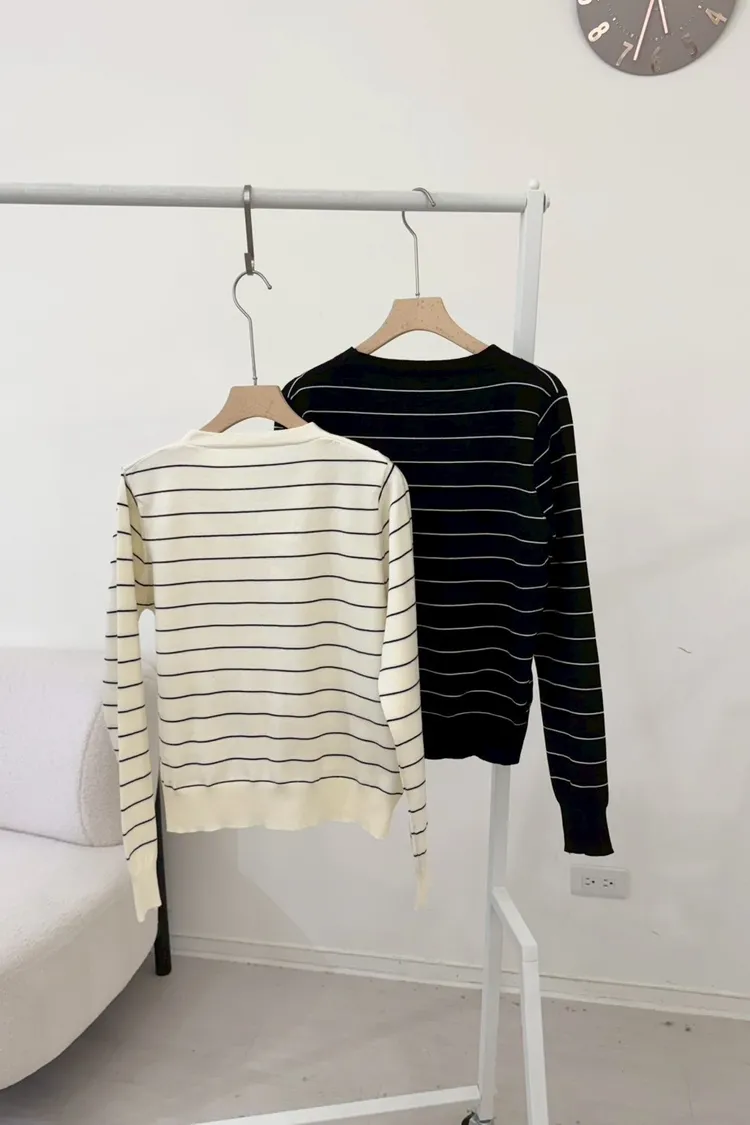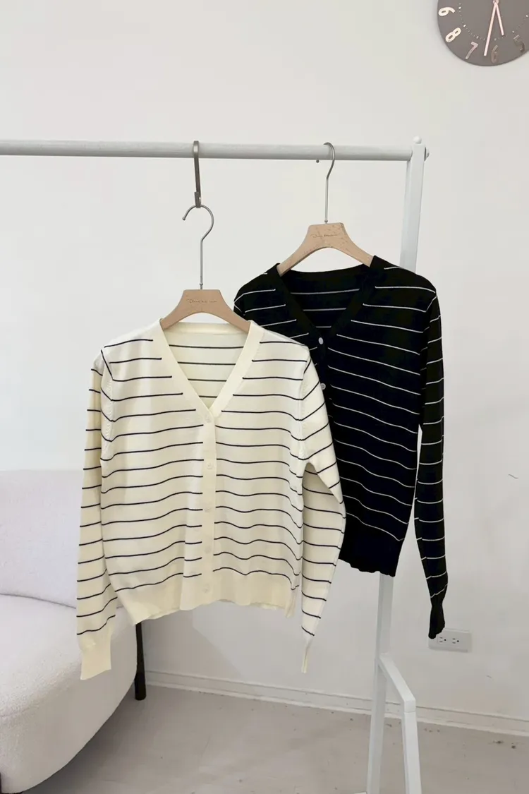 厚實棉//條紋排釦長袖