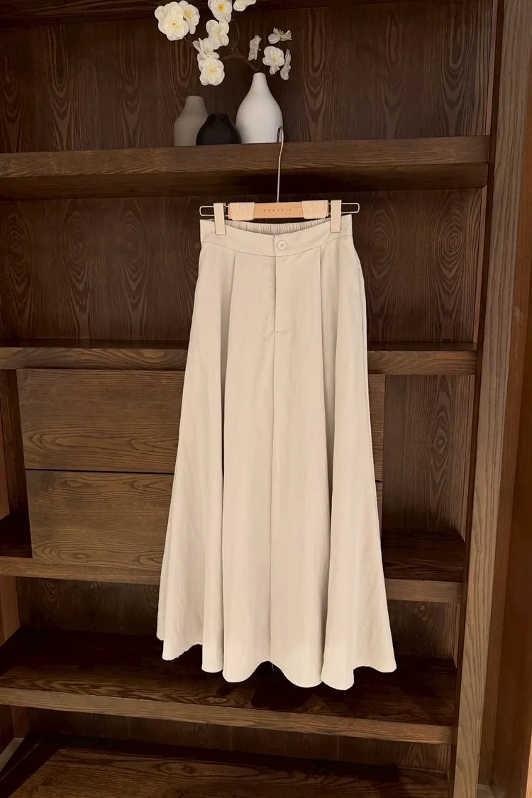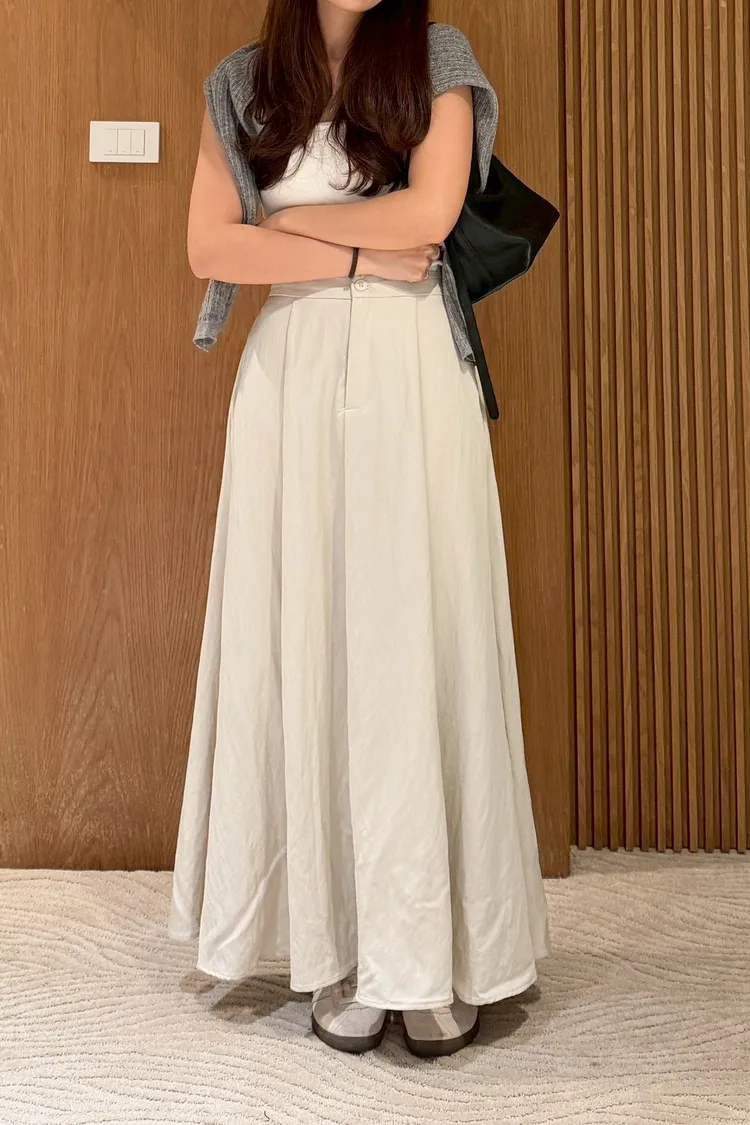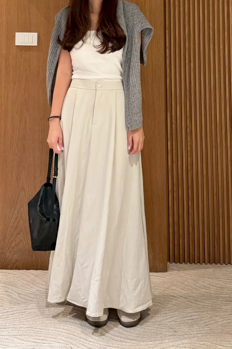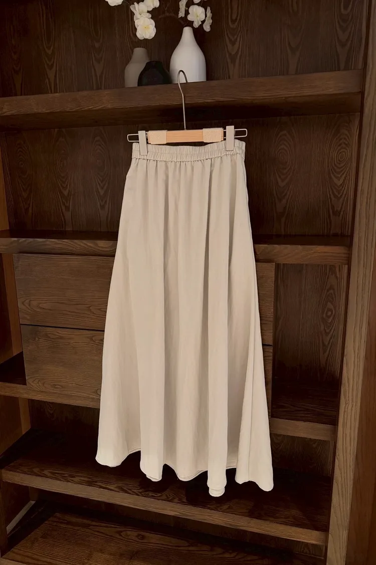 文青感後鬆緊素色長裙
