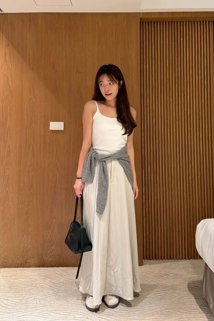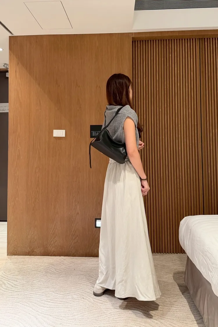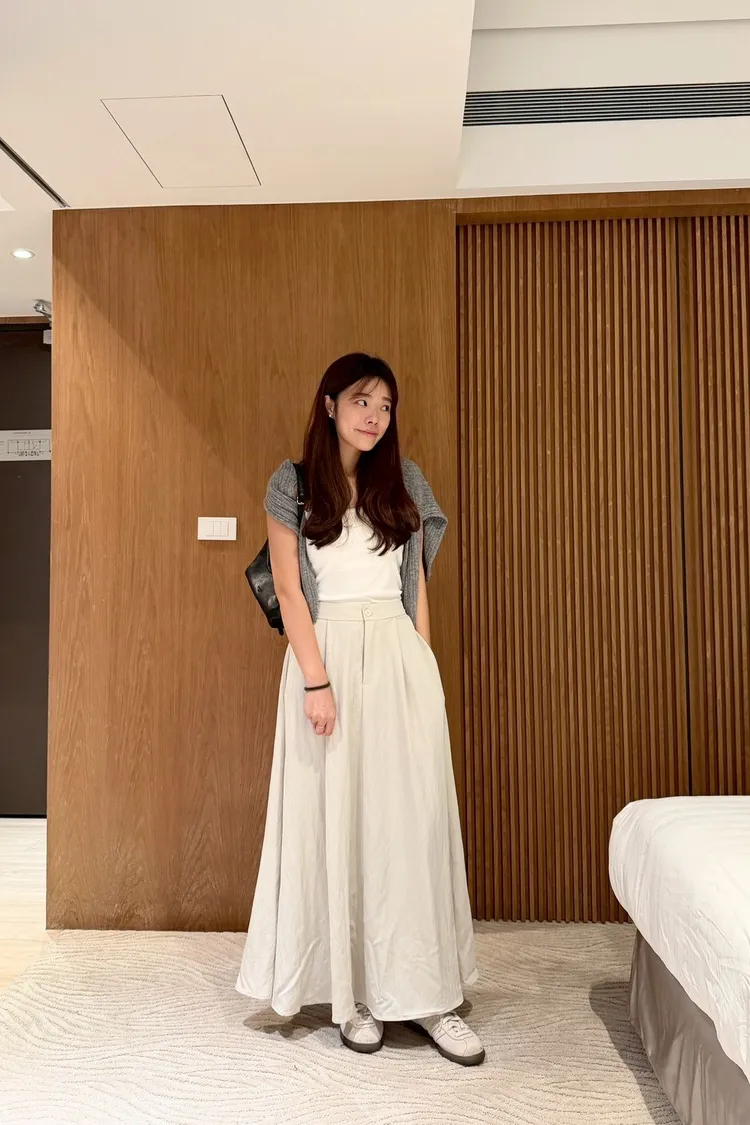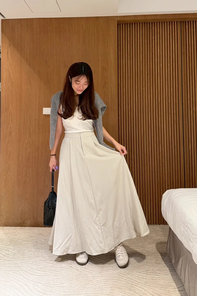 文青感後鬆緊素色長裙