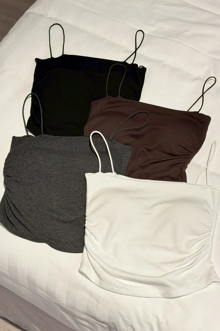 極細肩側抓皺加絨BRATOP