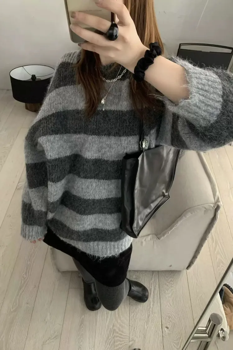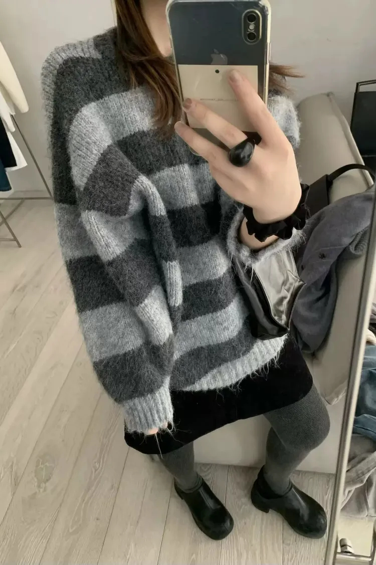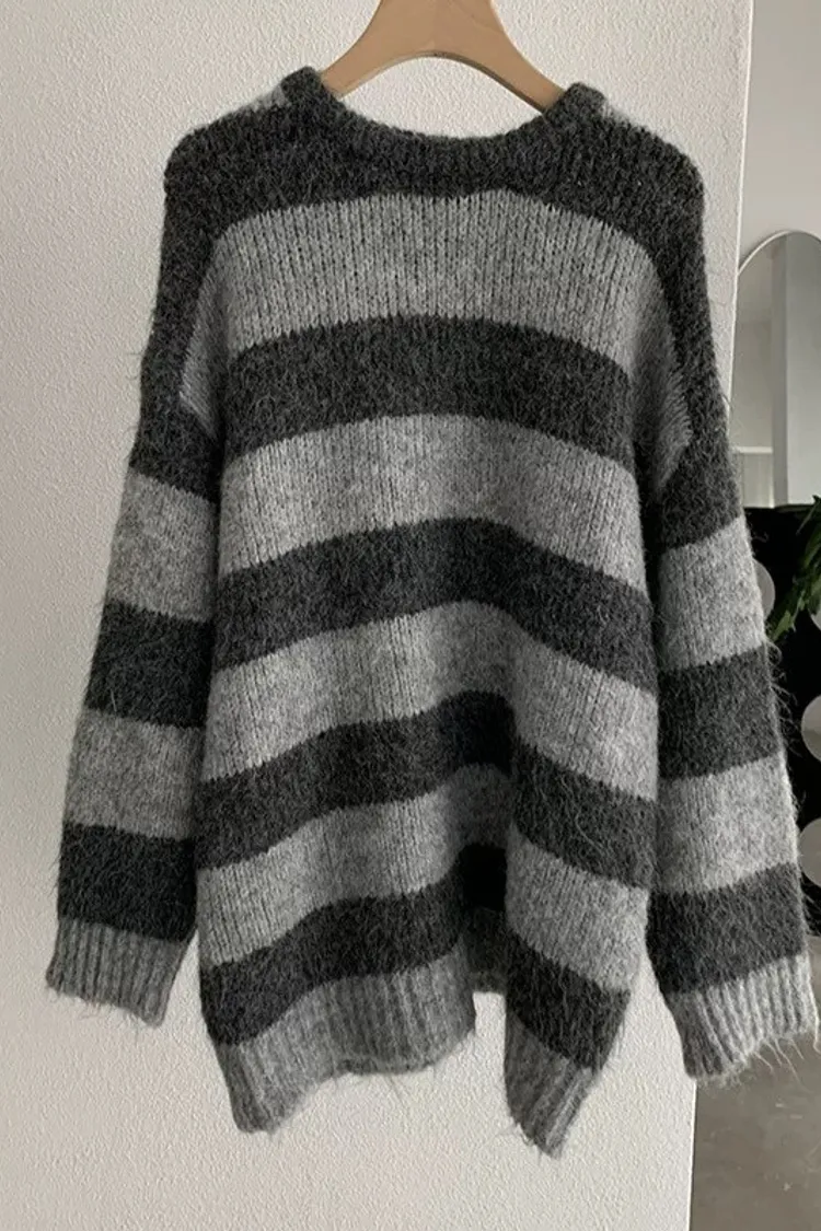 撞色寬條紋OVERSIZE毛衣