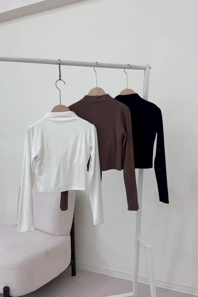 彈力微高領長袖上衣(帶BRA)