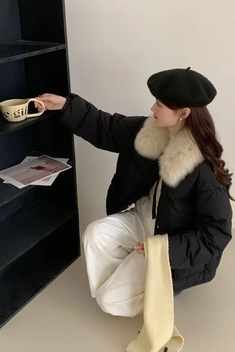 毛領蝴蝶結鋪棉外套