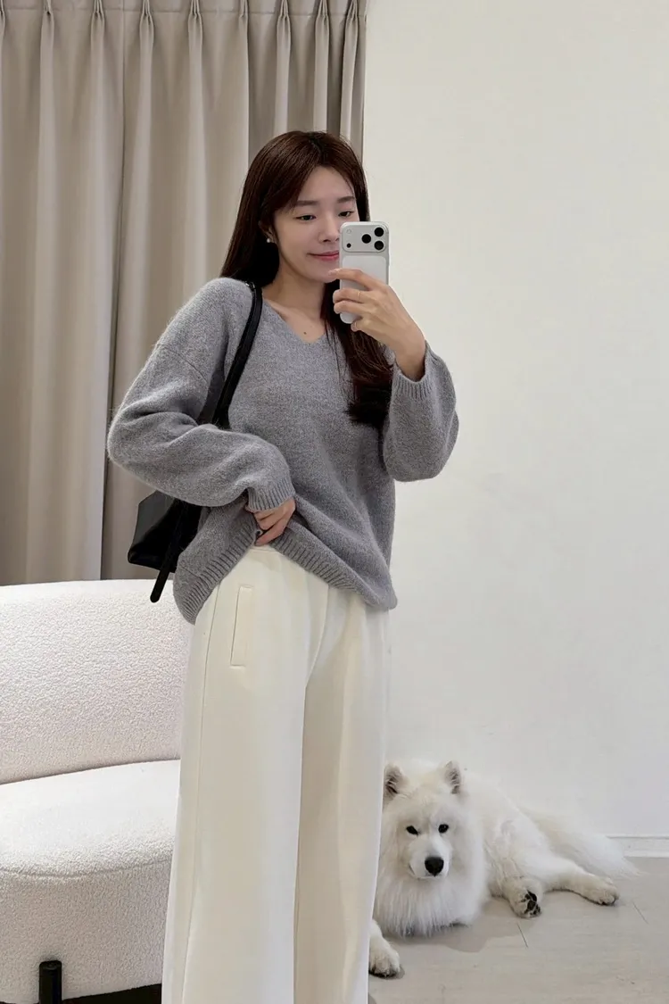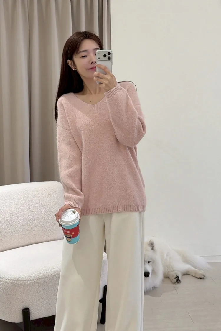 極好摸兔毛V領毛衣