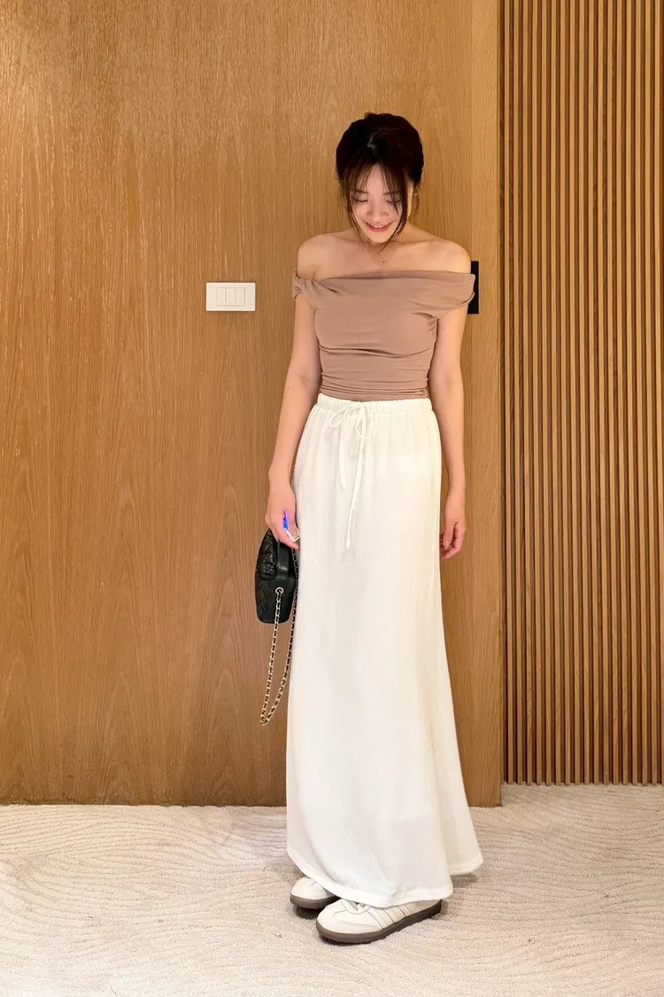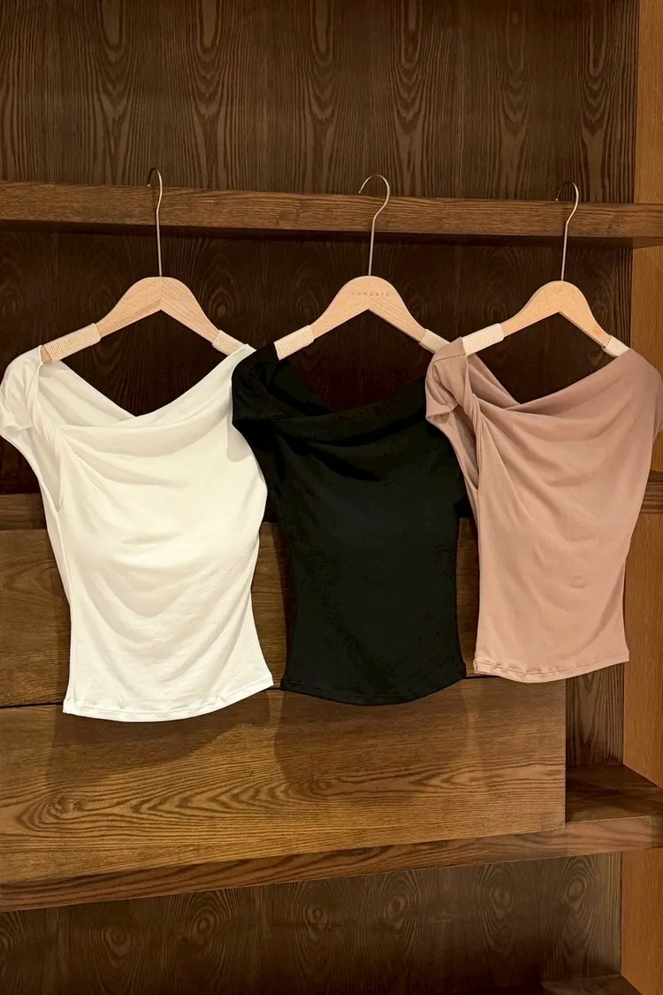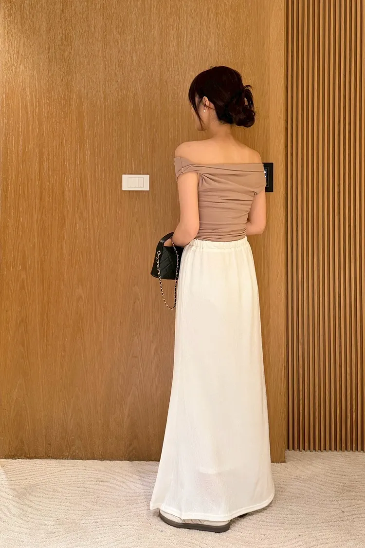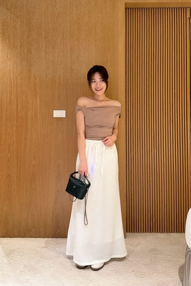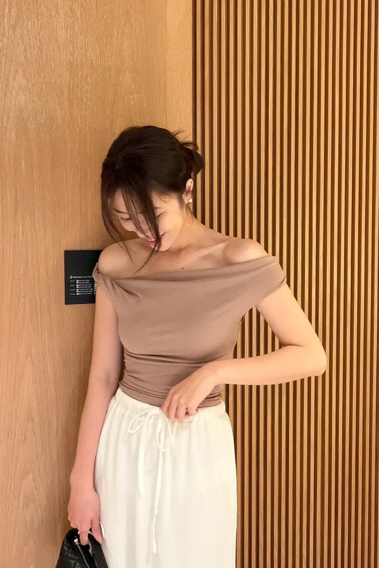 絕美法式一字領修身上衣