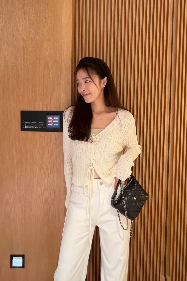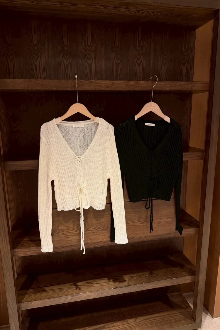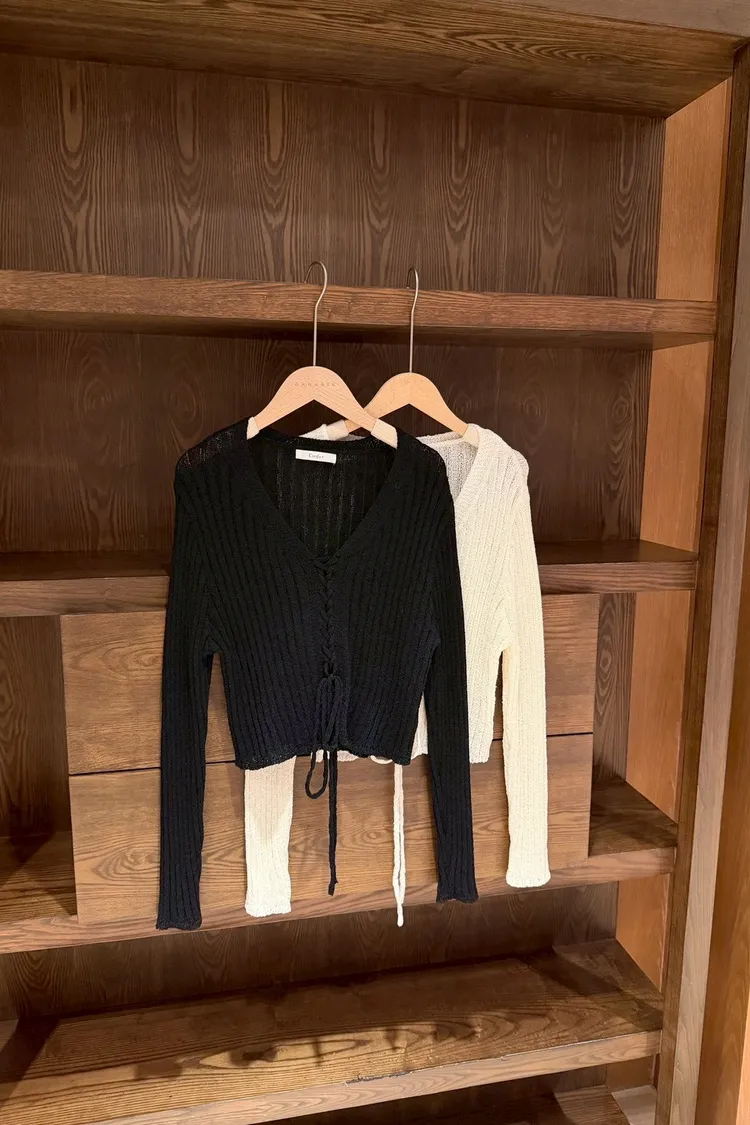 坑條綁帶針織上衣