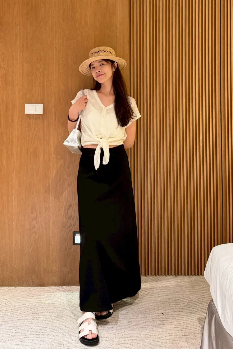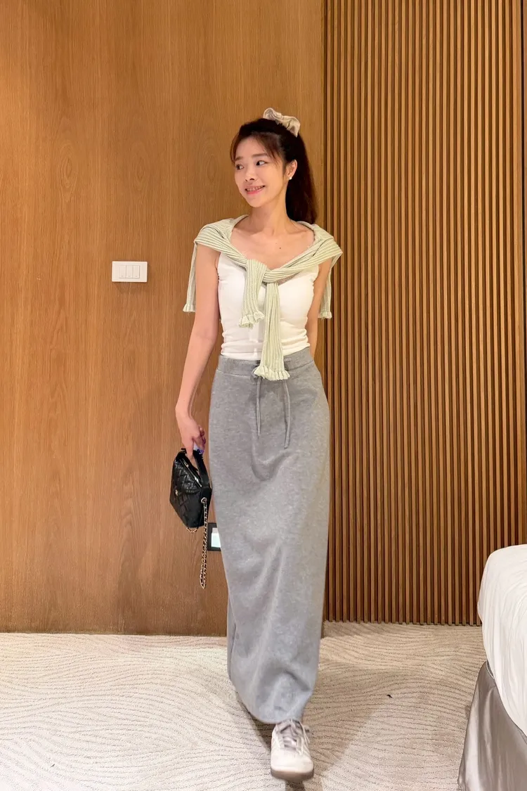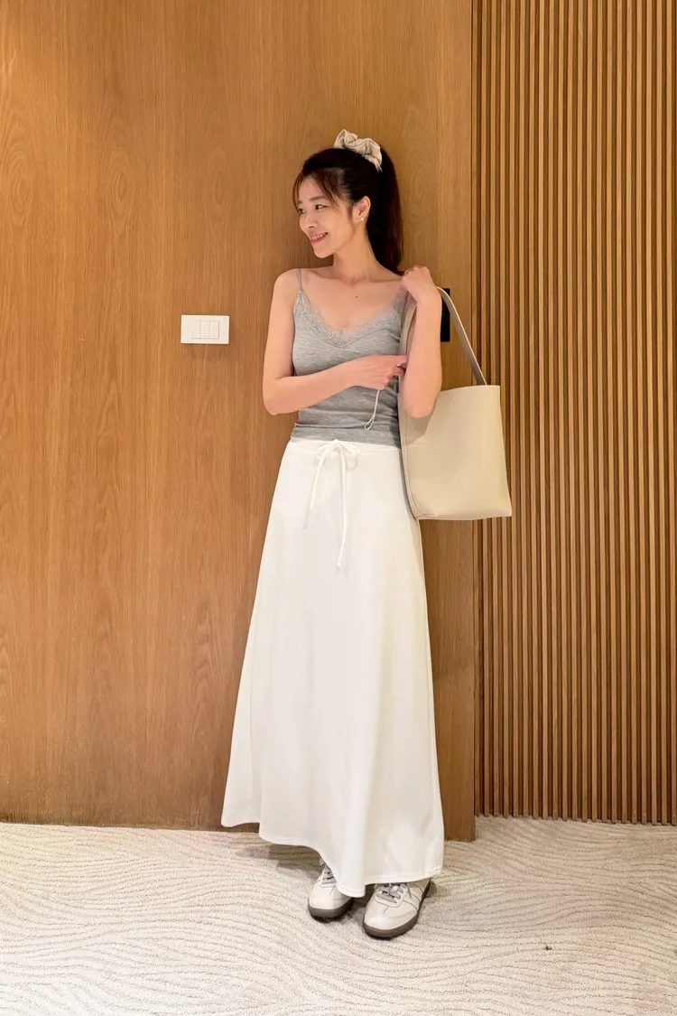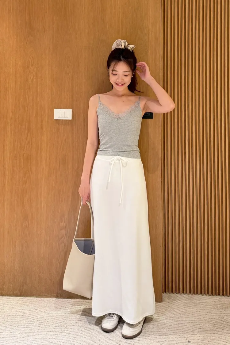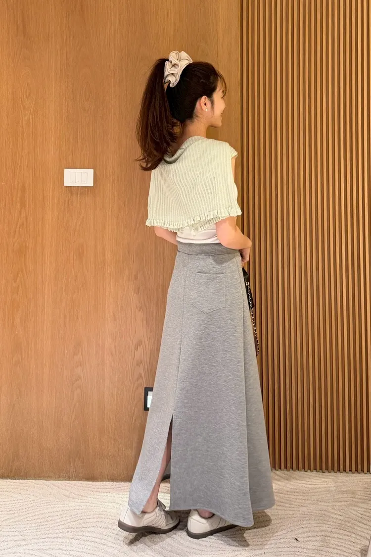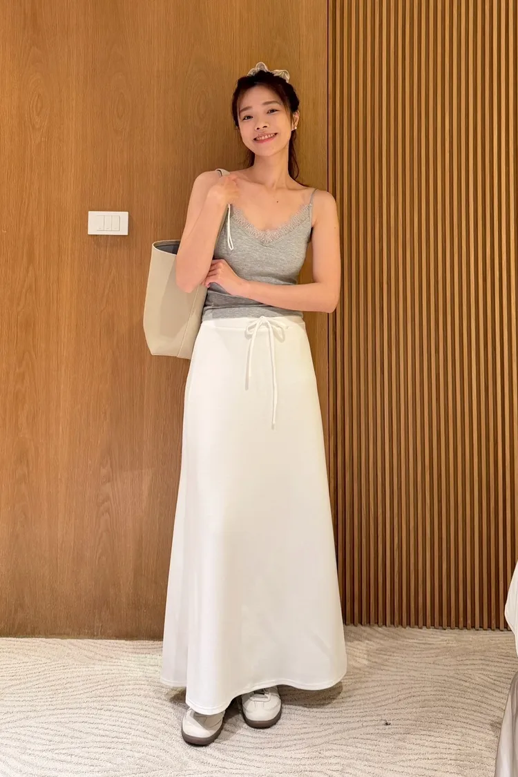 後開衩抽繩空氣棉裙