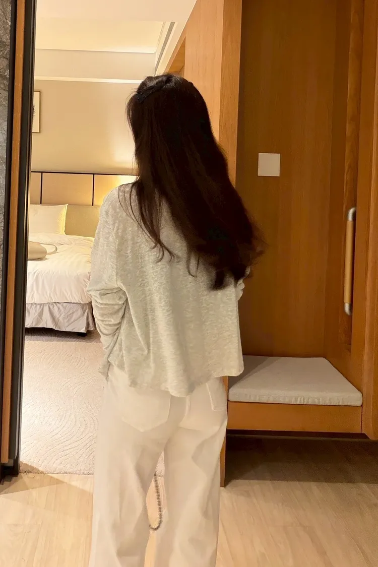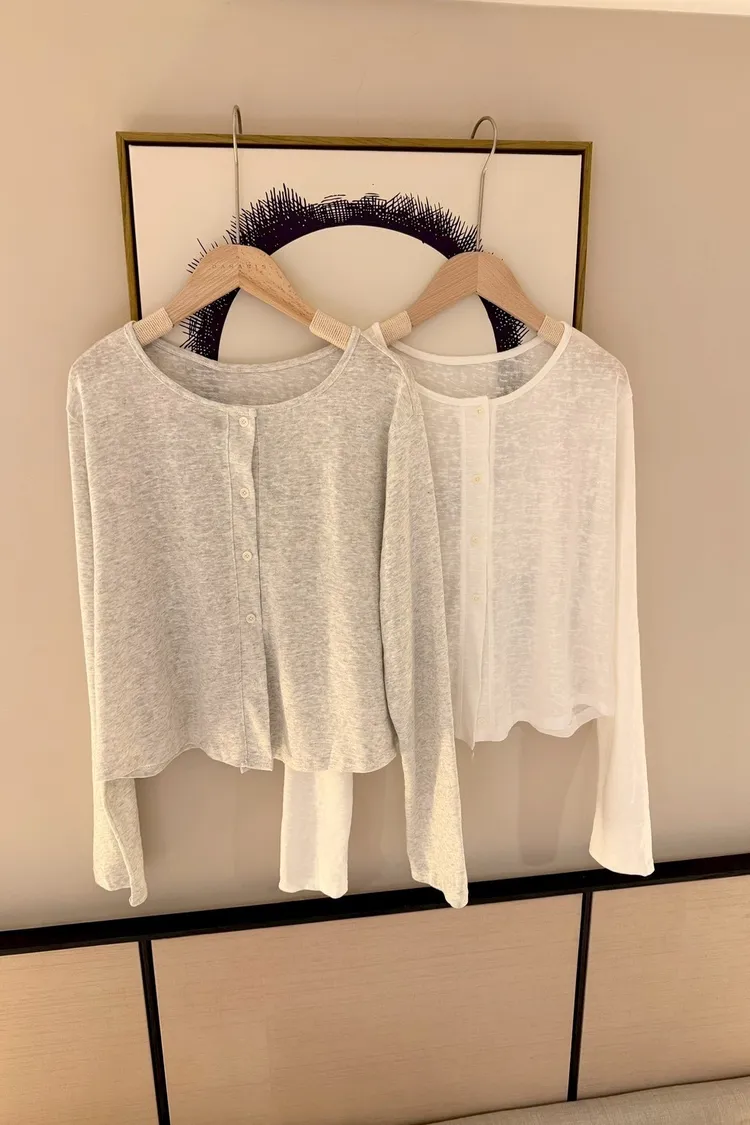 混色竹節棉排釦長袖