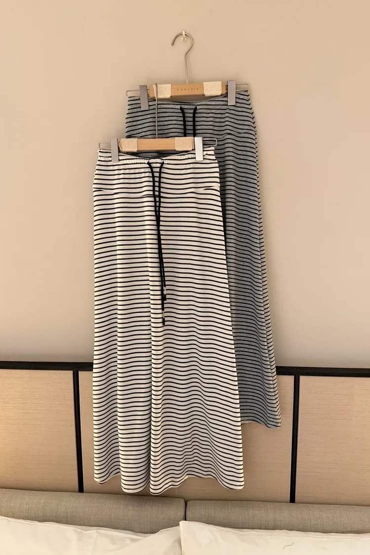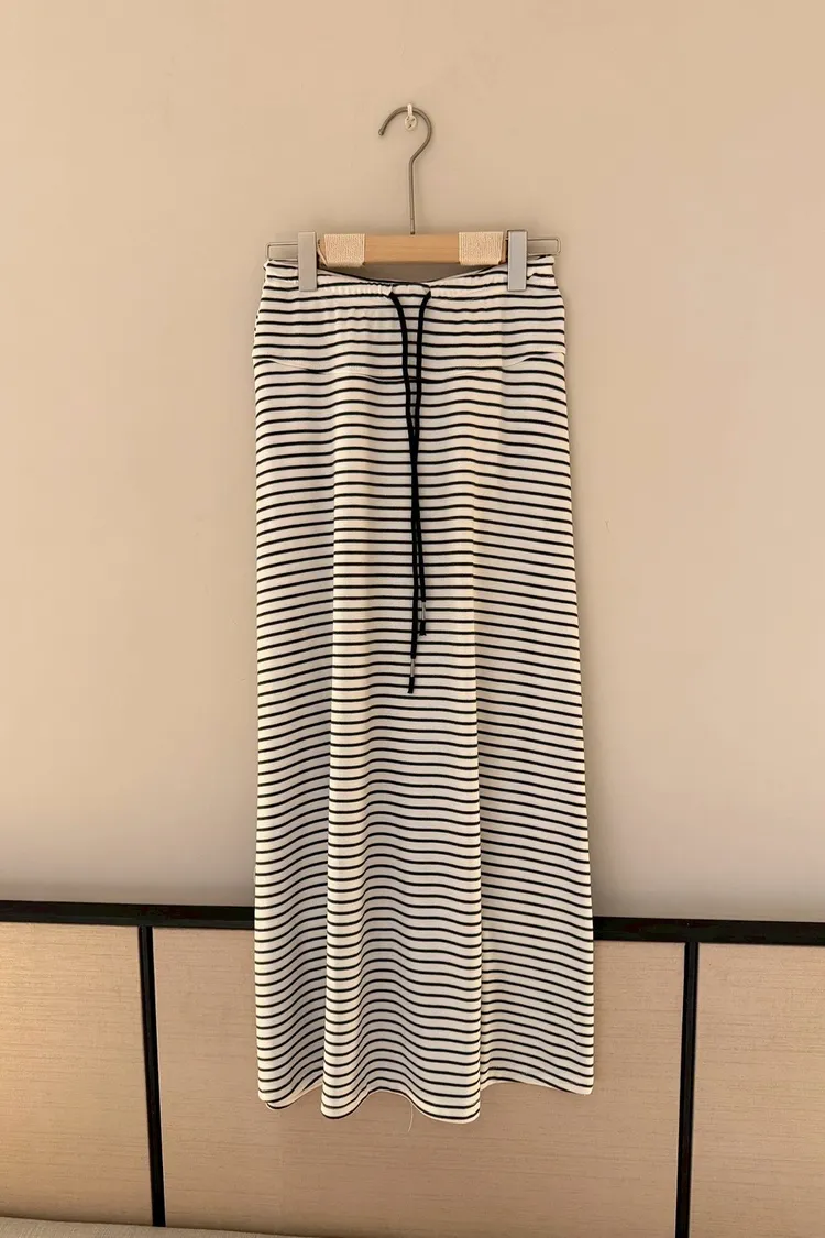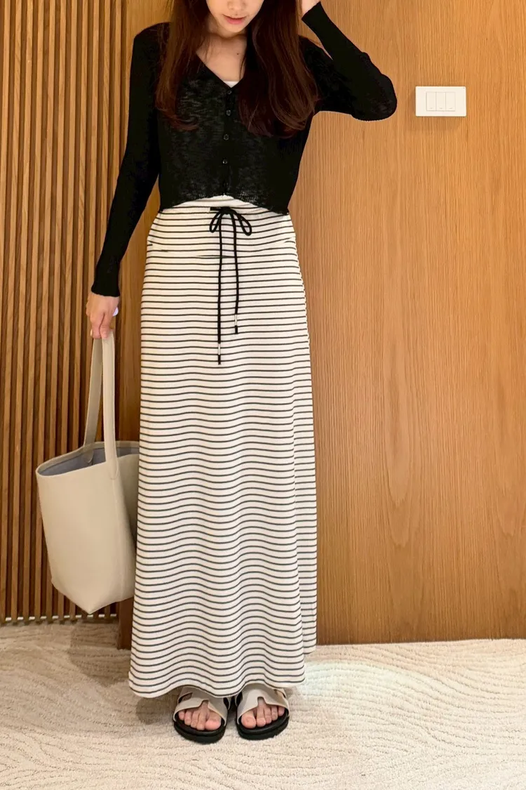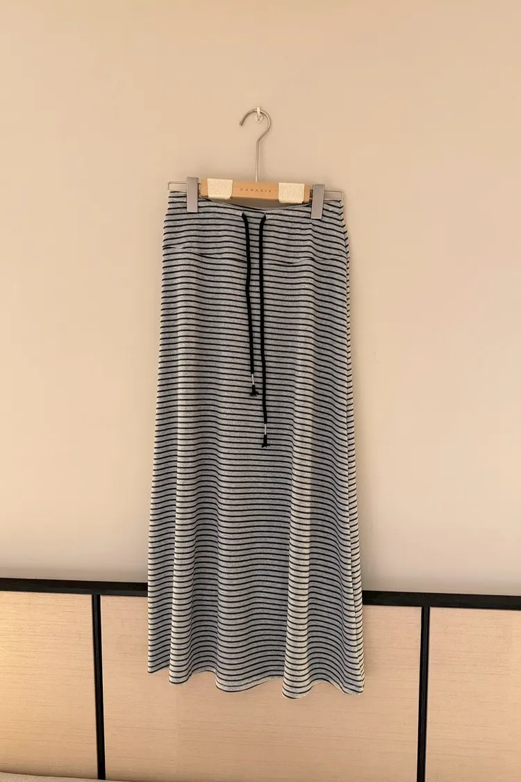 灰常好看//條紋抽繩棉質長裙