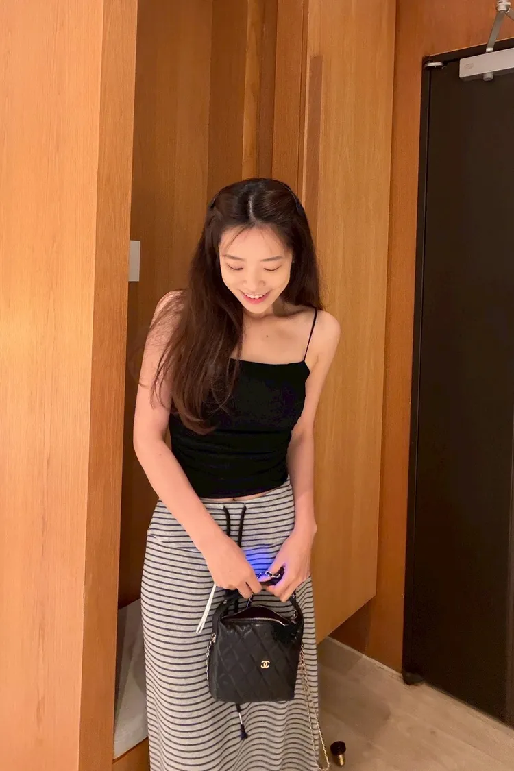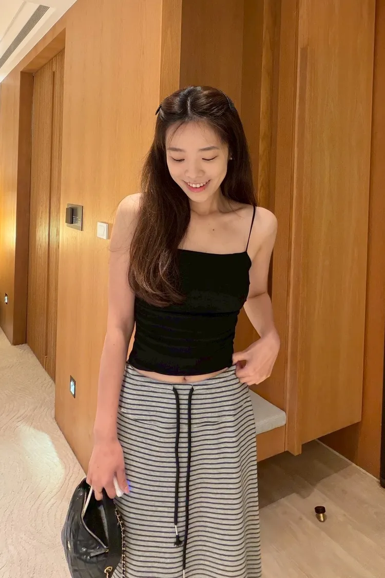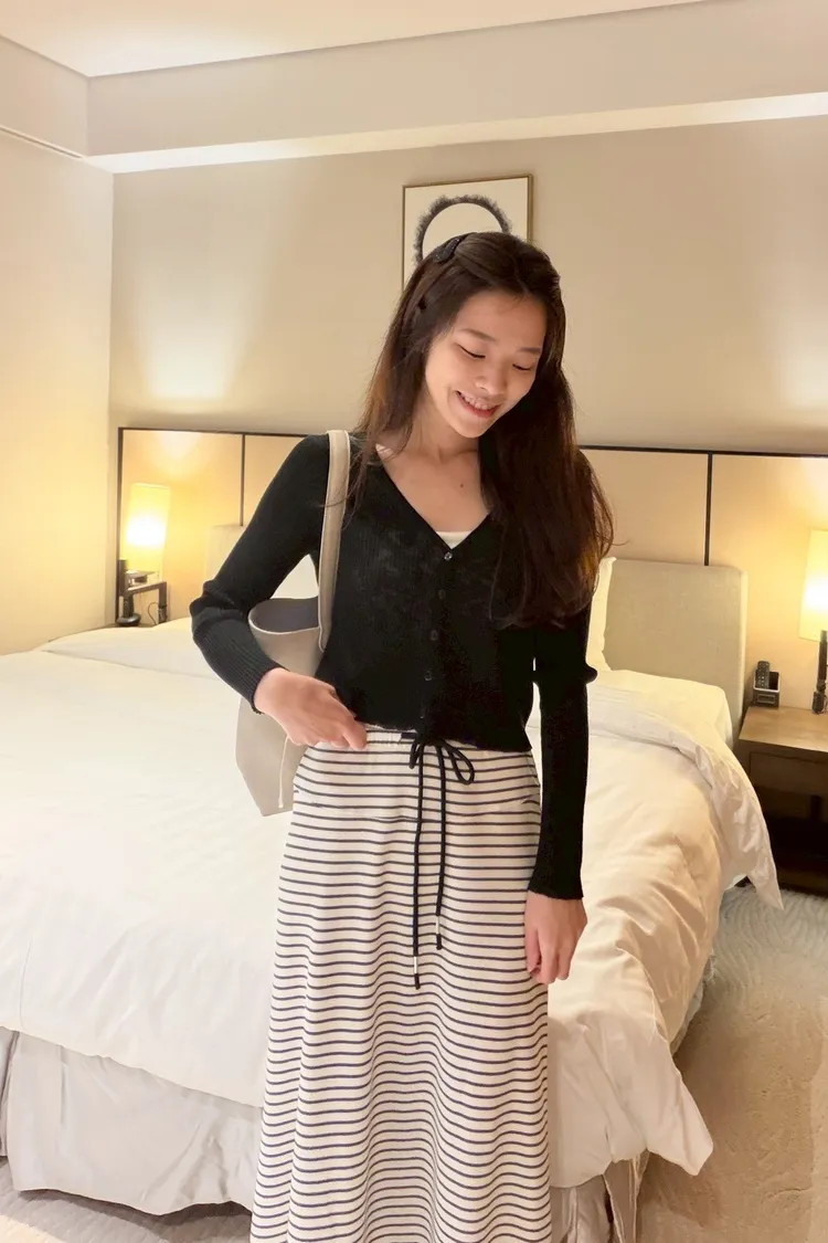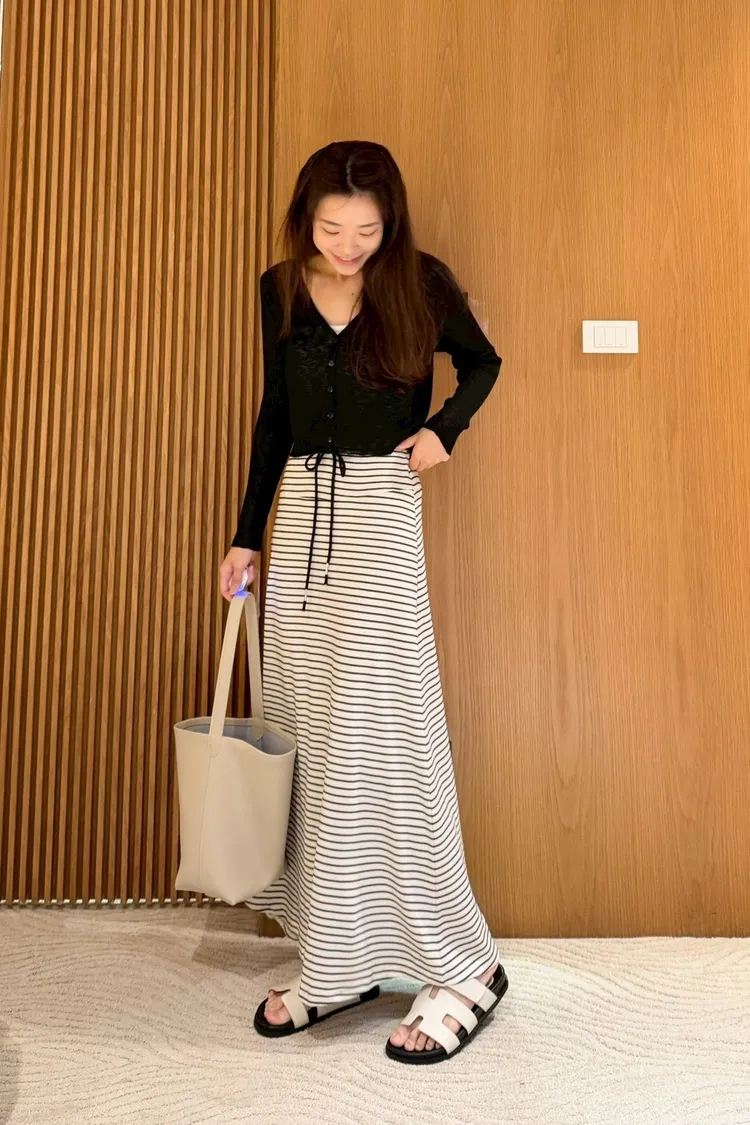灰常好看//條紋抽繩棉質長裙