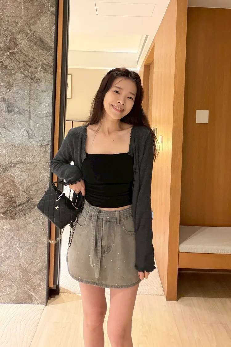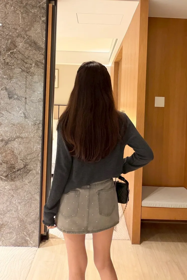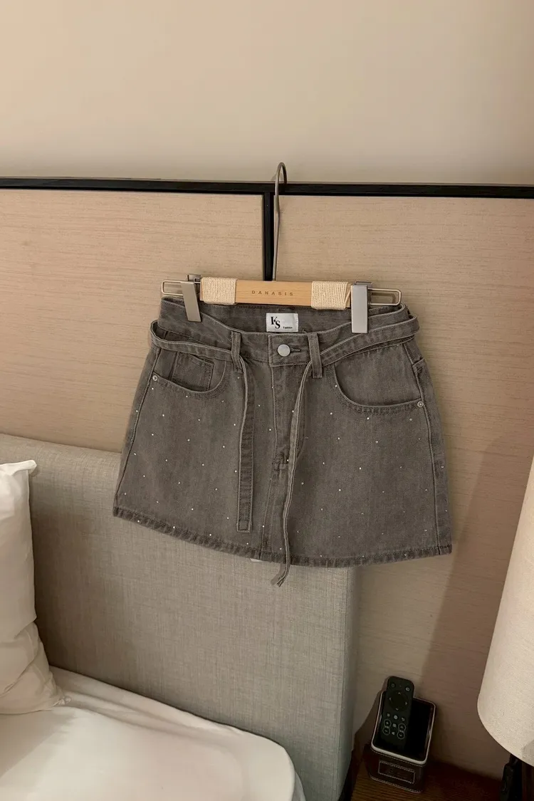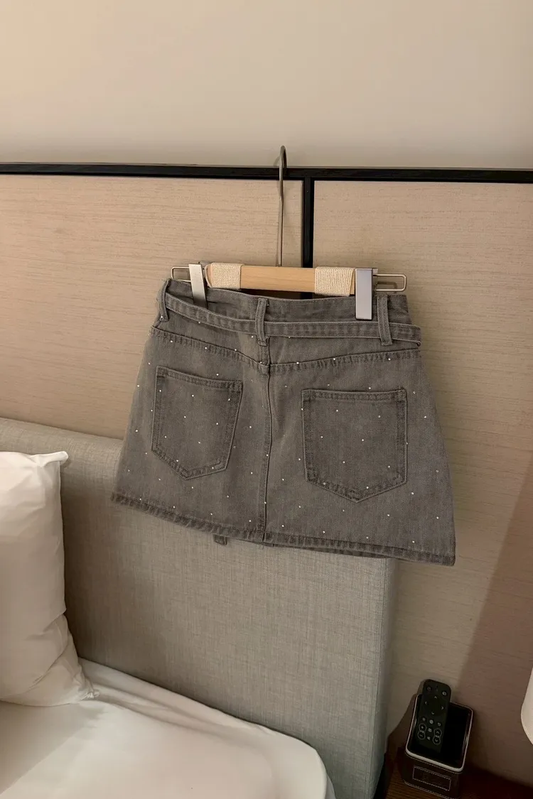 細閃燙鑽牛仔短裙