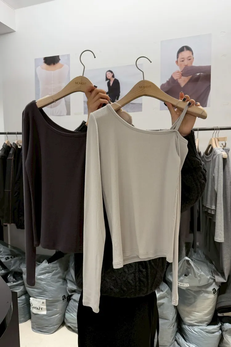 『FIZZI』一眼拿捏//純棉斜肩上衣