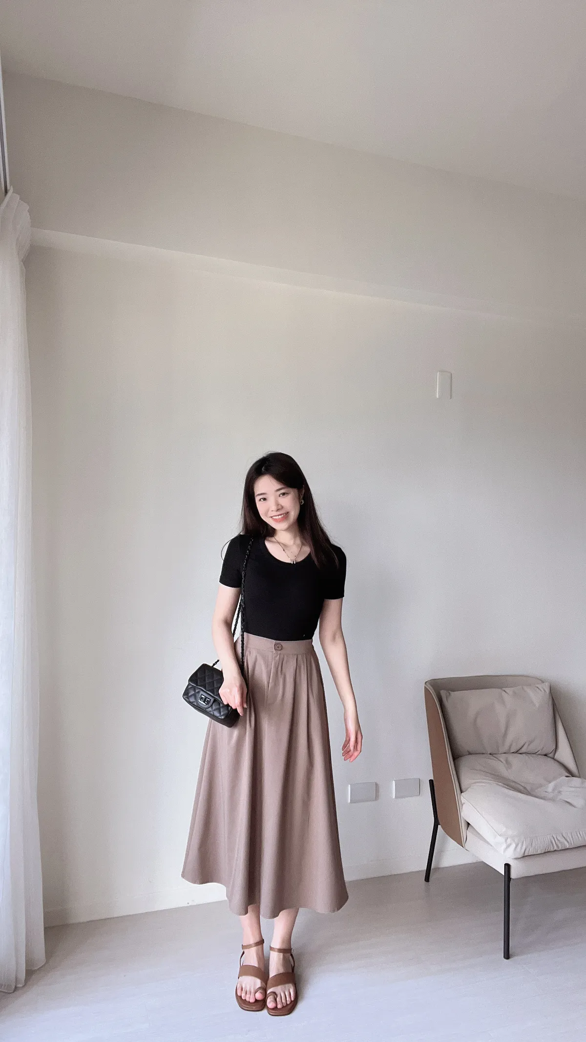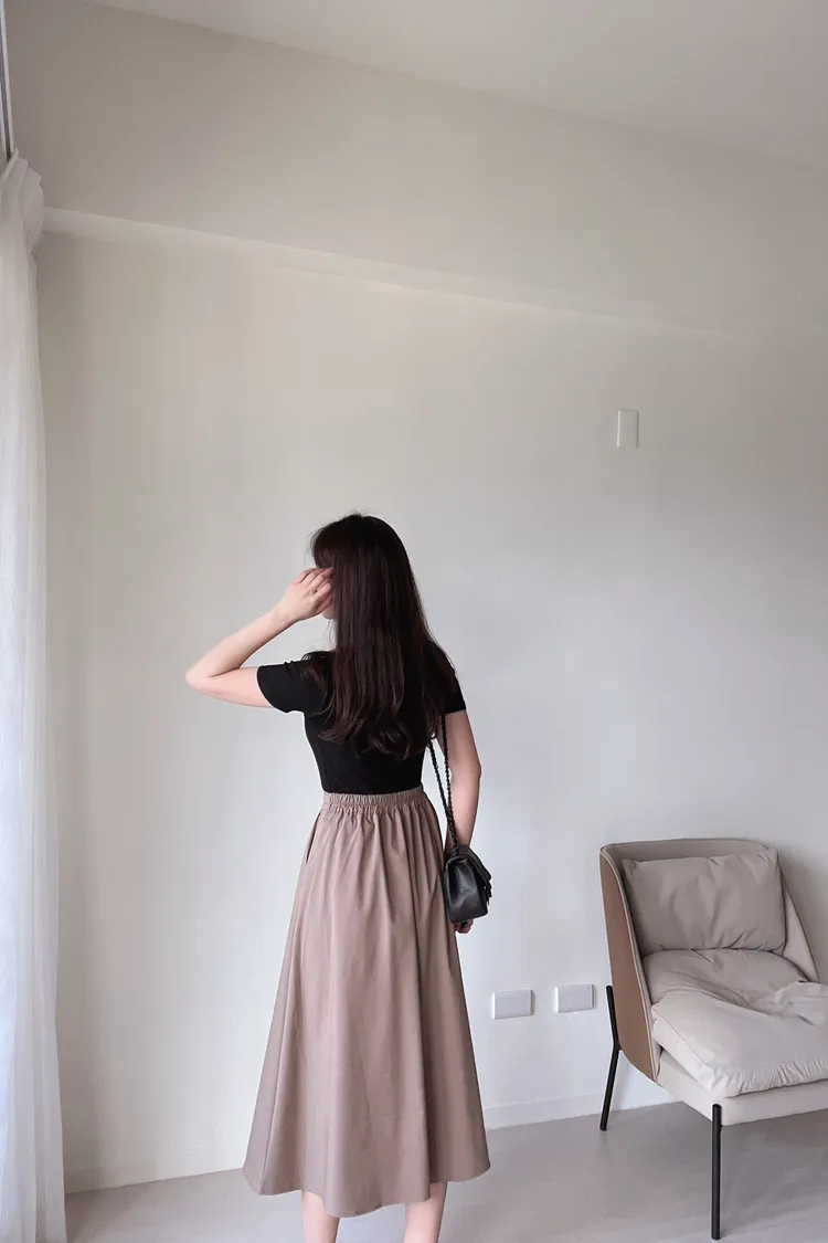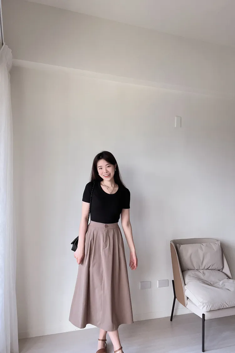 (二手)氣質單釦素面圓裙